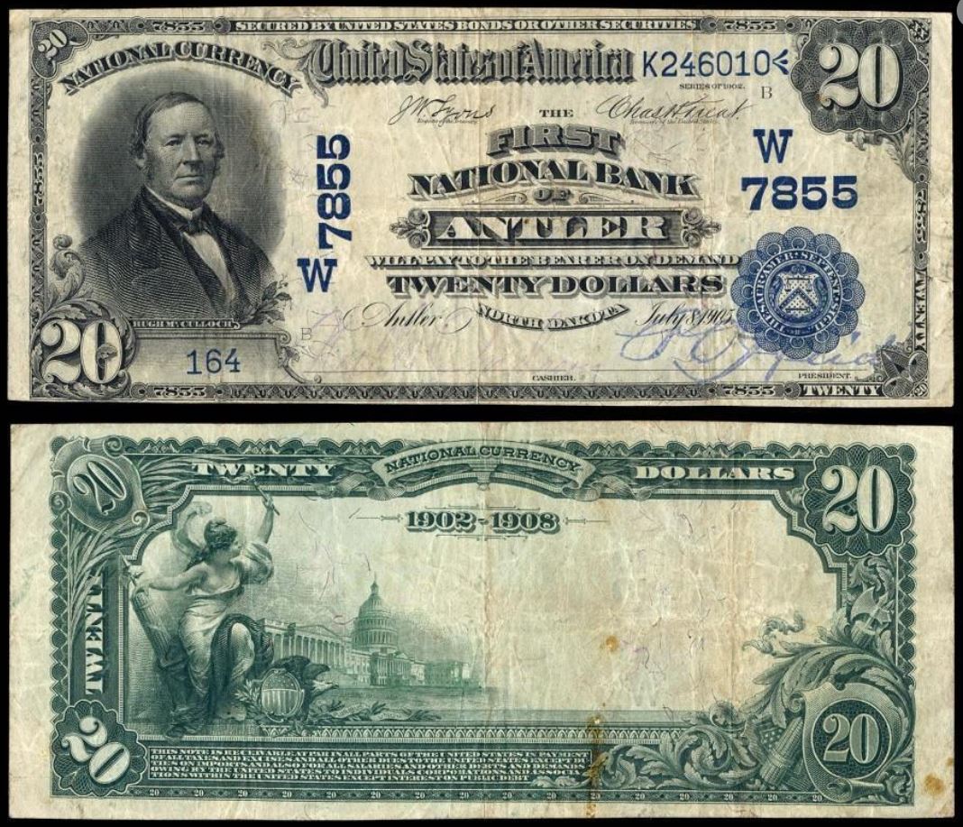| ND | Antler | 7855 | 1 | The First National Bank of | 1902DB | 20 | 164 | B | N | VF 20 Net | PMG | Image | |