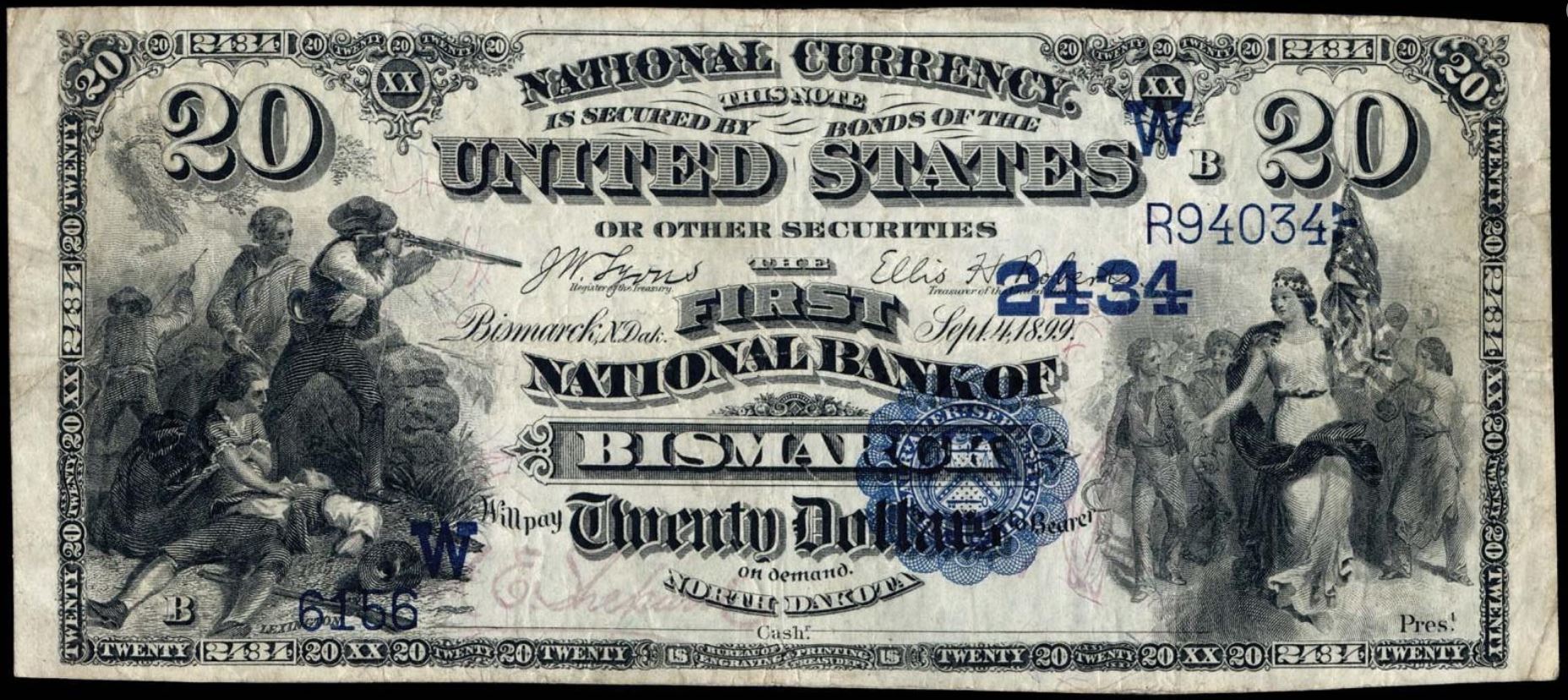 | ND | Bismarck | 2434 | 1 | The First National Bank of | 1882DB | 20 | 6156 | B | N | VF 25 | PMG | Image | |