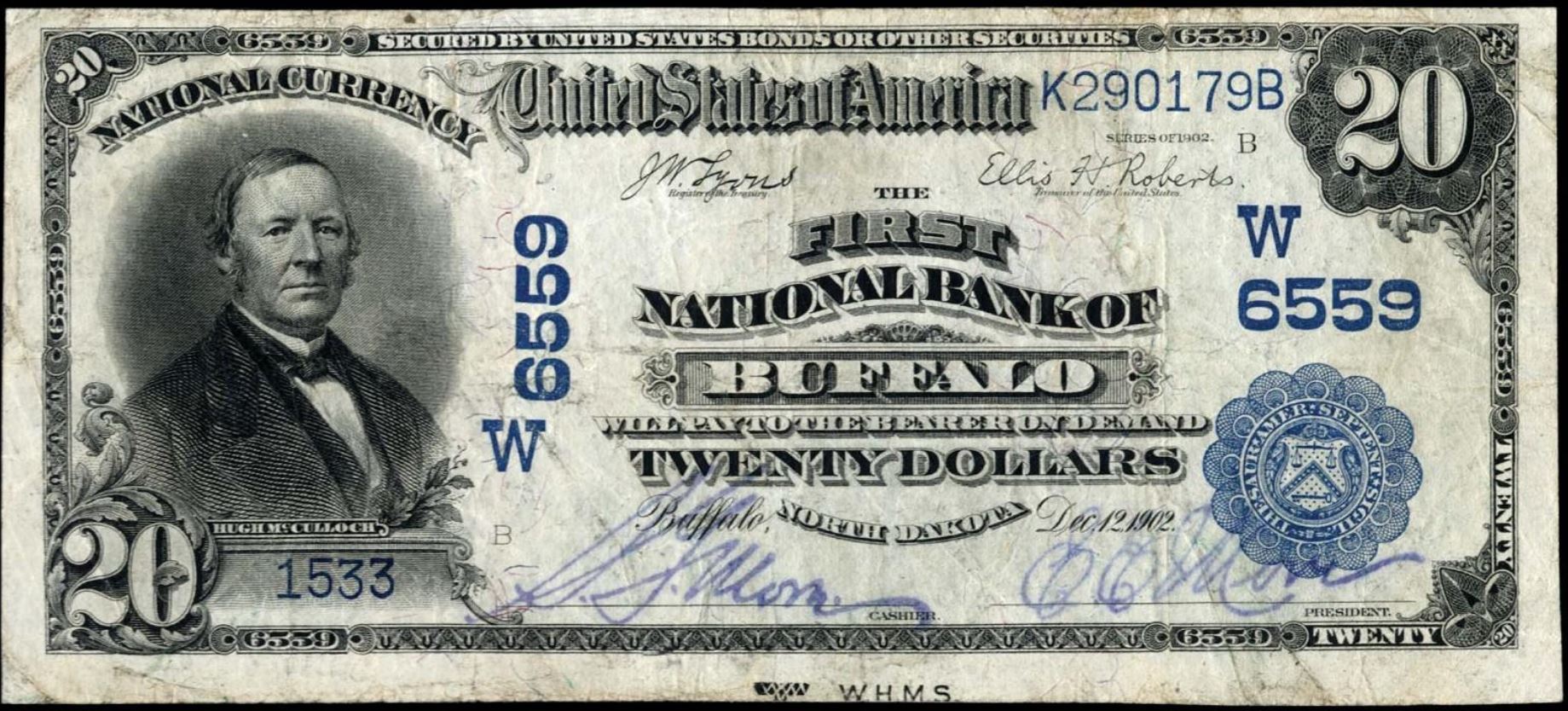 | ND | Buffalo | 6559 | 1 | The First National Bank of | 1902DB | 20 | 1533 | B | N | VF 20 | PMG | Image | |