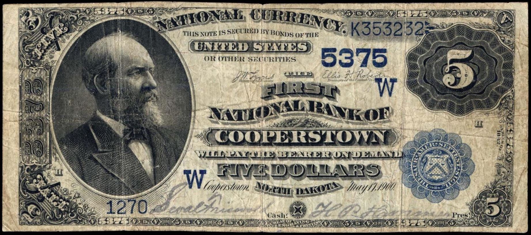 | ND | Cooperstown | 5375 | 1 | The First National Bank of | 1882DB | 5 | 1270 | H | N | Fine 12 | PMG | Image | |