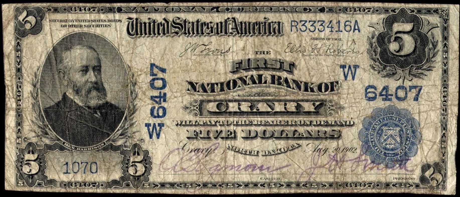 | ND | Crary | 6407 | 1 | The First National Bank of | 1902DB | 5 | 1070 | A | N | VG 10 Net | PMG | Image | |