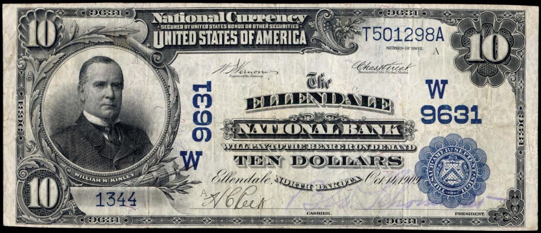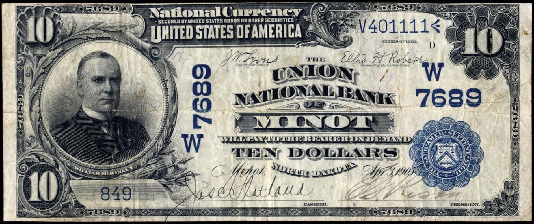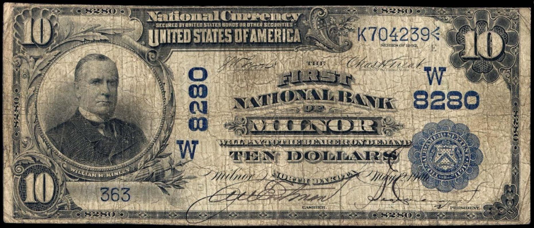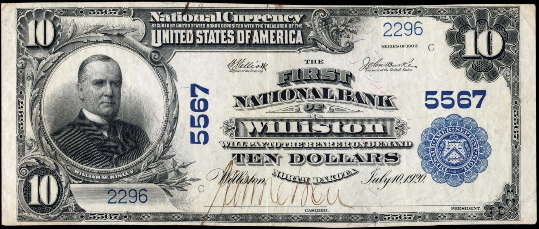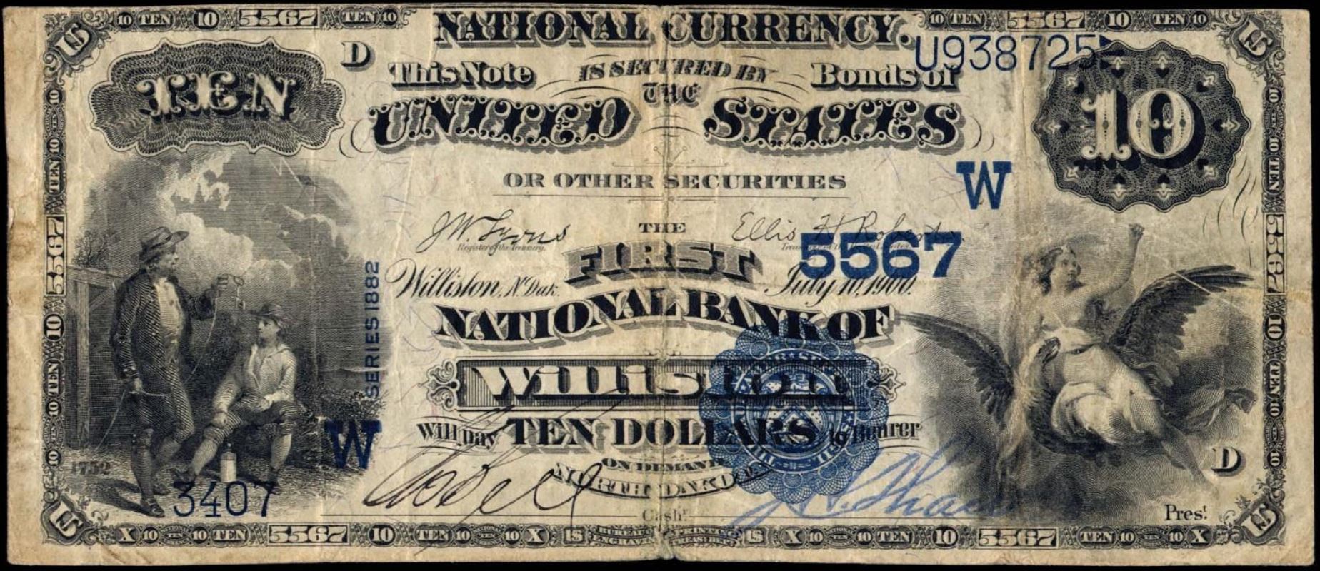 | ND | Williston | 5567 | 1 | The First National Bank of | 1902PB | 10 | 2296 | C | N | VF 30 | PMG | Image | |
