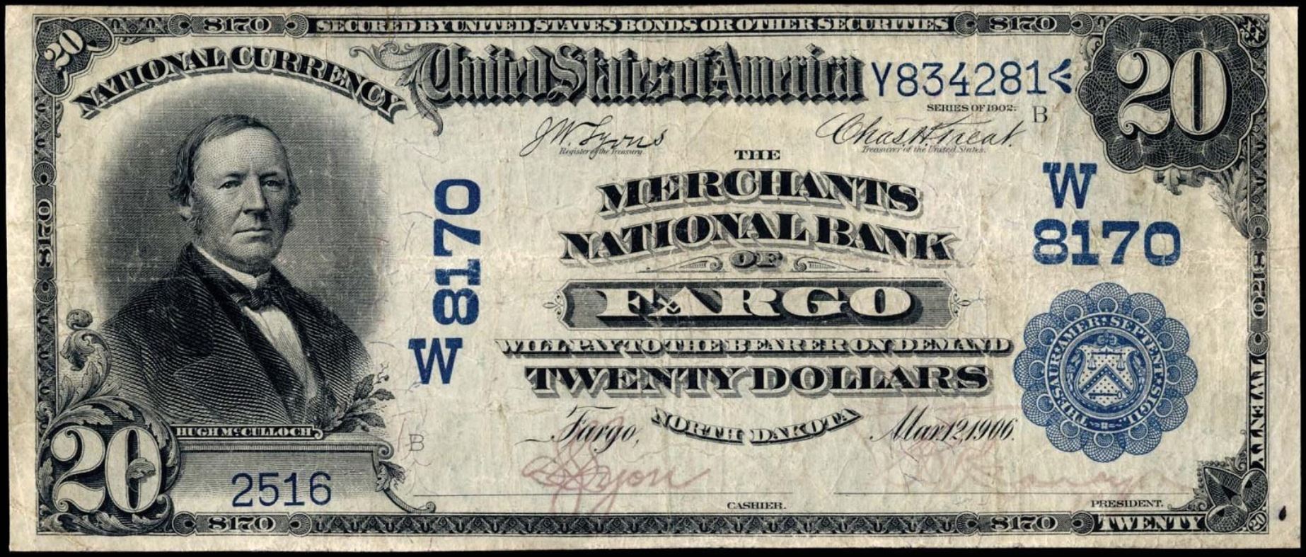 - Notes from 124 of the 150 North Dakota towns with National Banks that issued notes.