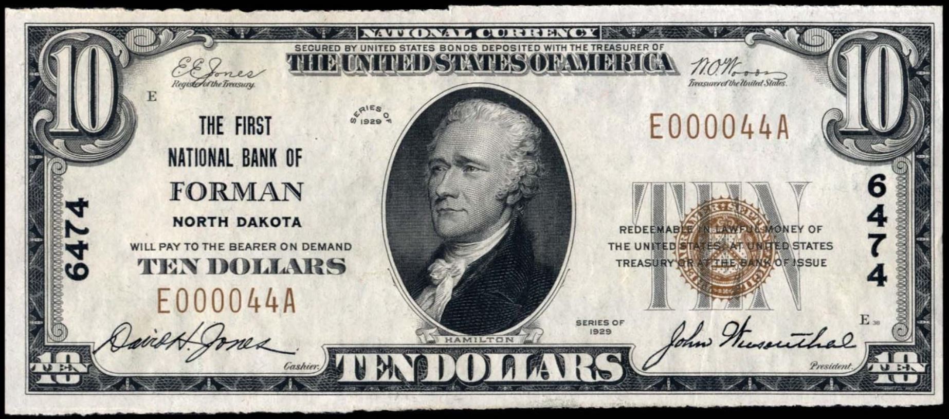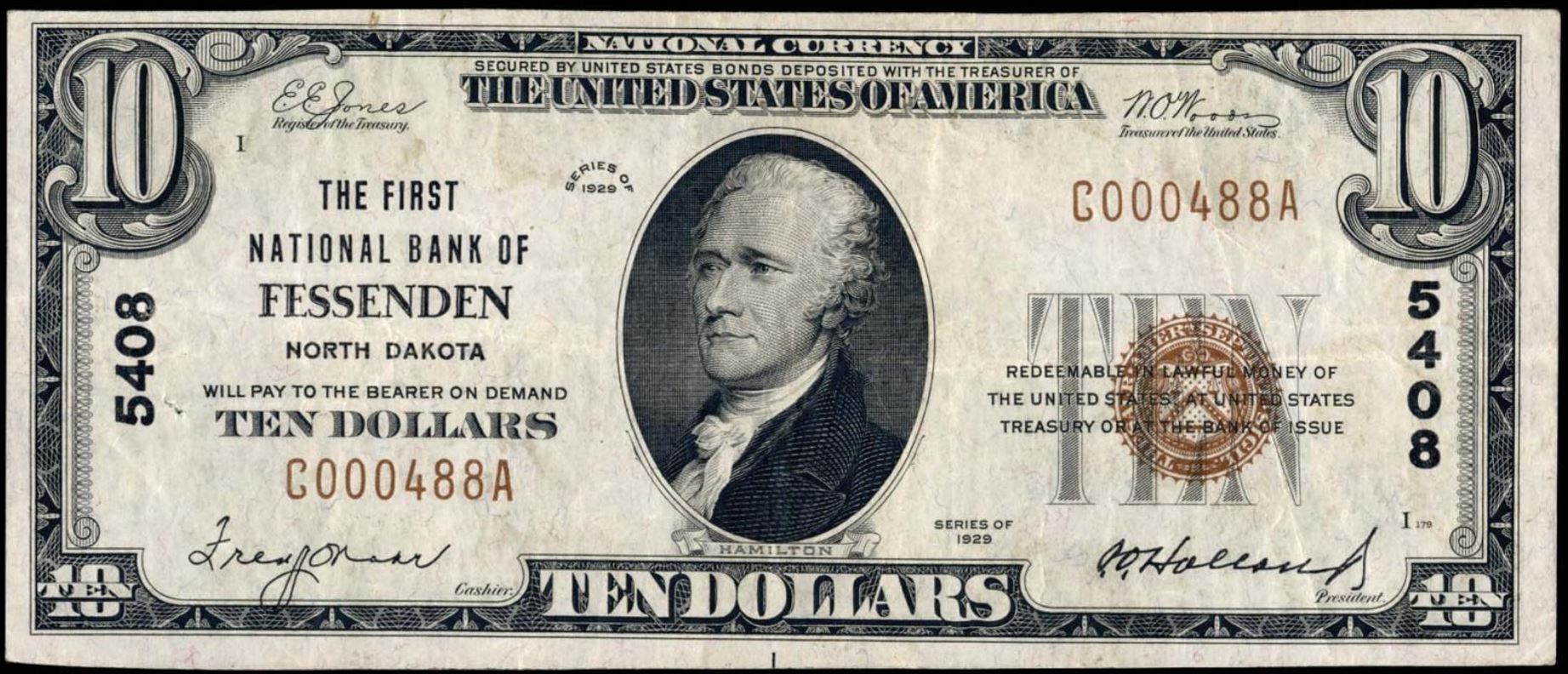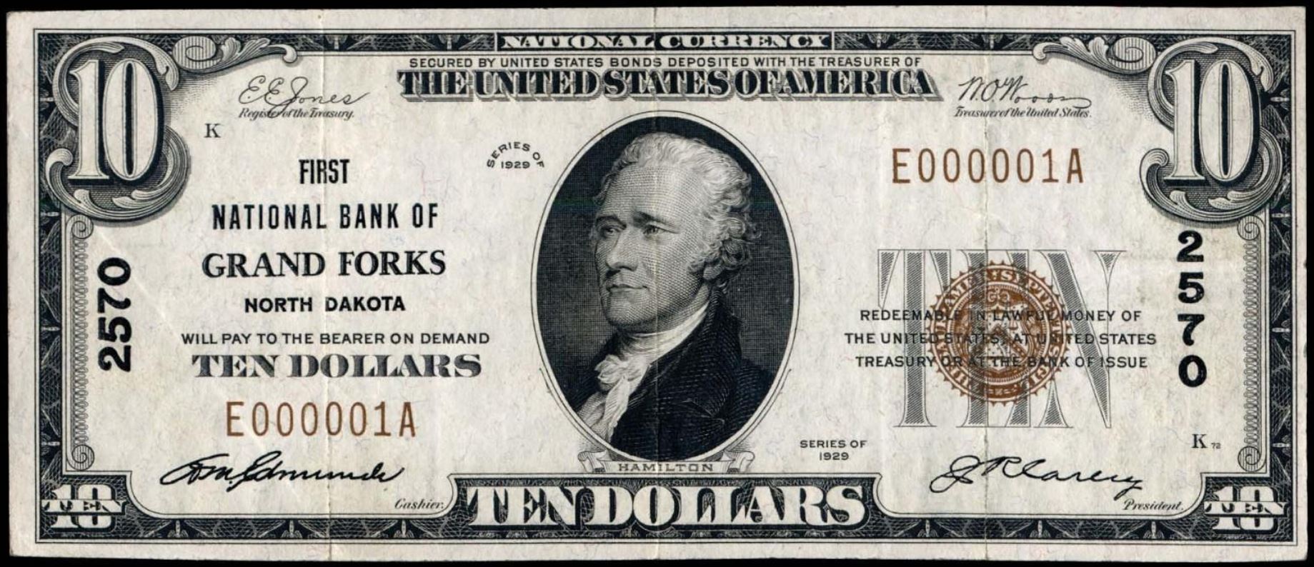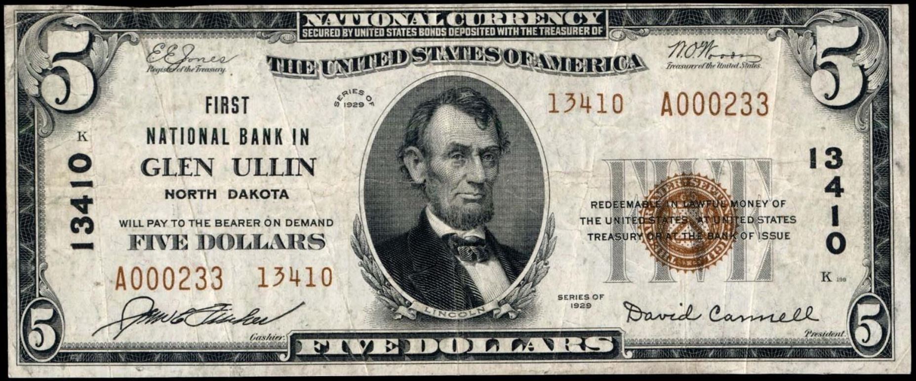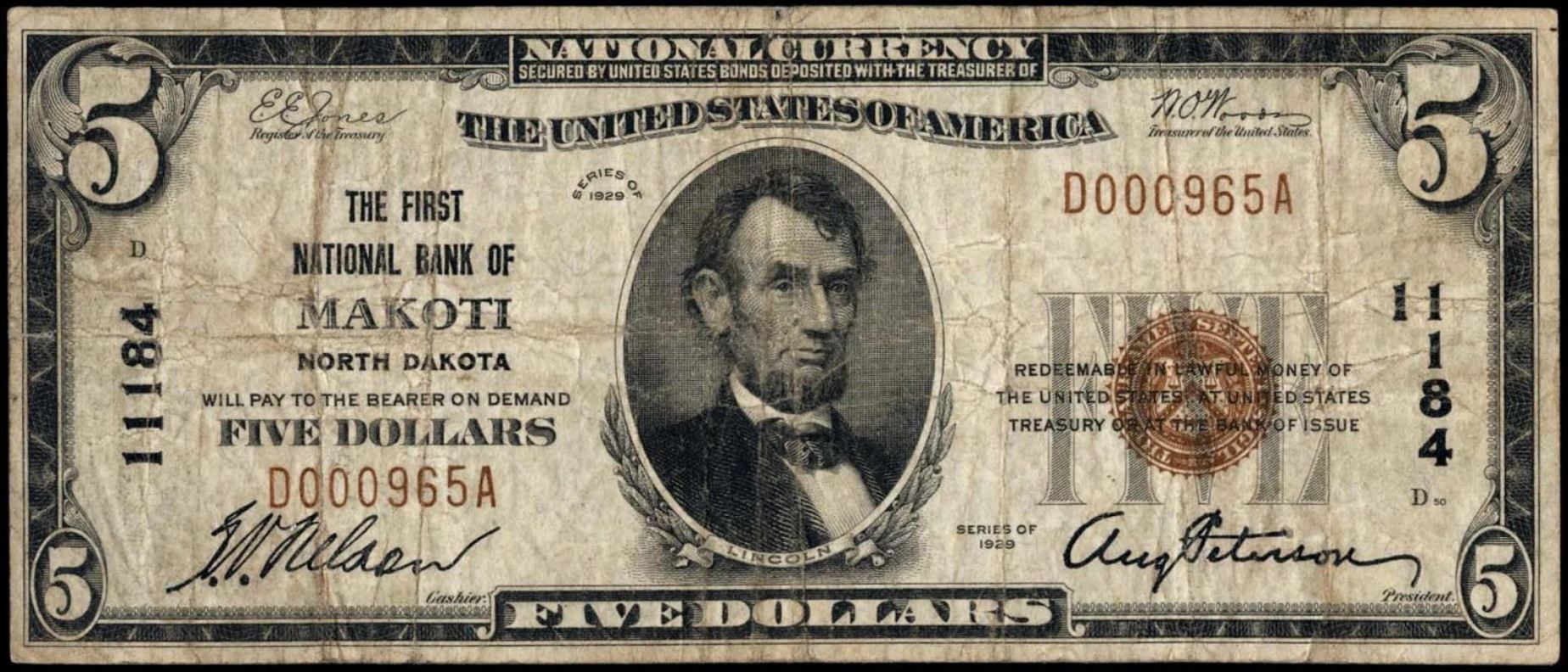 | ND | Crosby | 10596 | 1 | The First National Bank of | 1929T1 | 5 | 1290 | D | N | VF 30 | PMG | Image | |