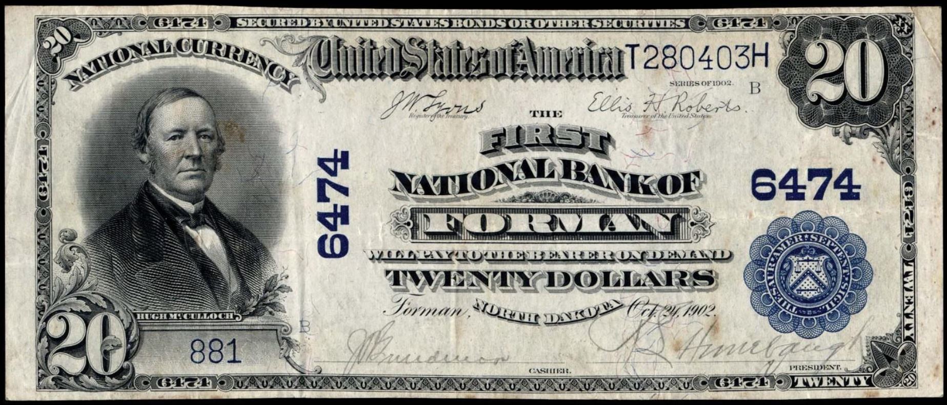 | ND | Wahpeton | 4106 | 1 | The National Bank of | 1902PB | 20 | 4007 | A | N | VF 30 | PMG | Image | |