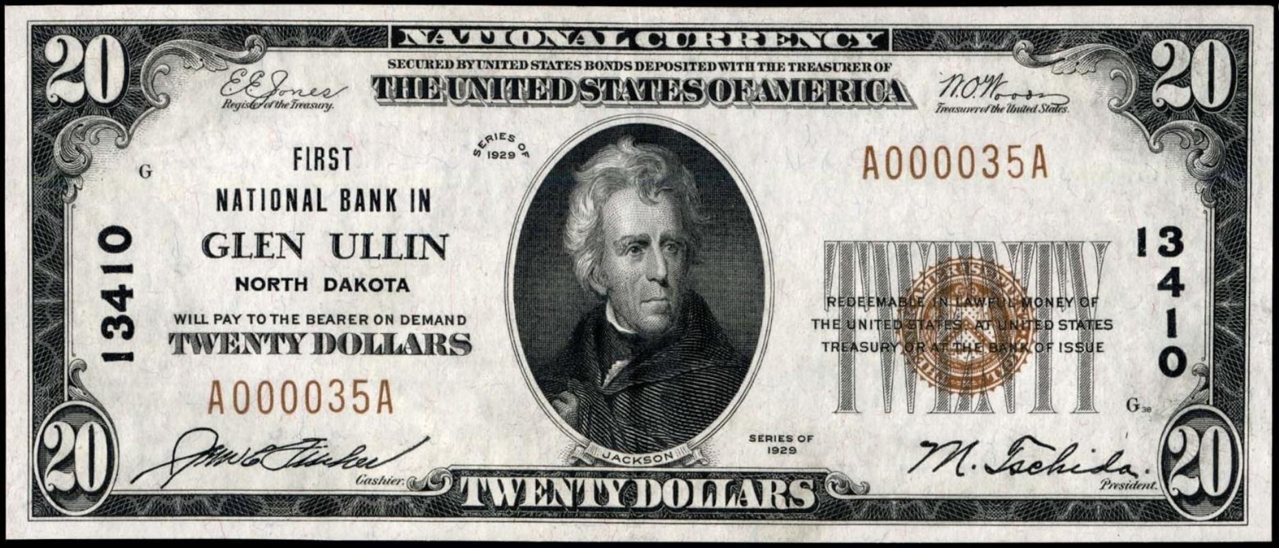 | ND | Dickinson | 4384 | 1 | The First National Bank of | 1929T1 | 20 | 572 | E | N | VF 35 | PMG | Image | |