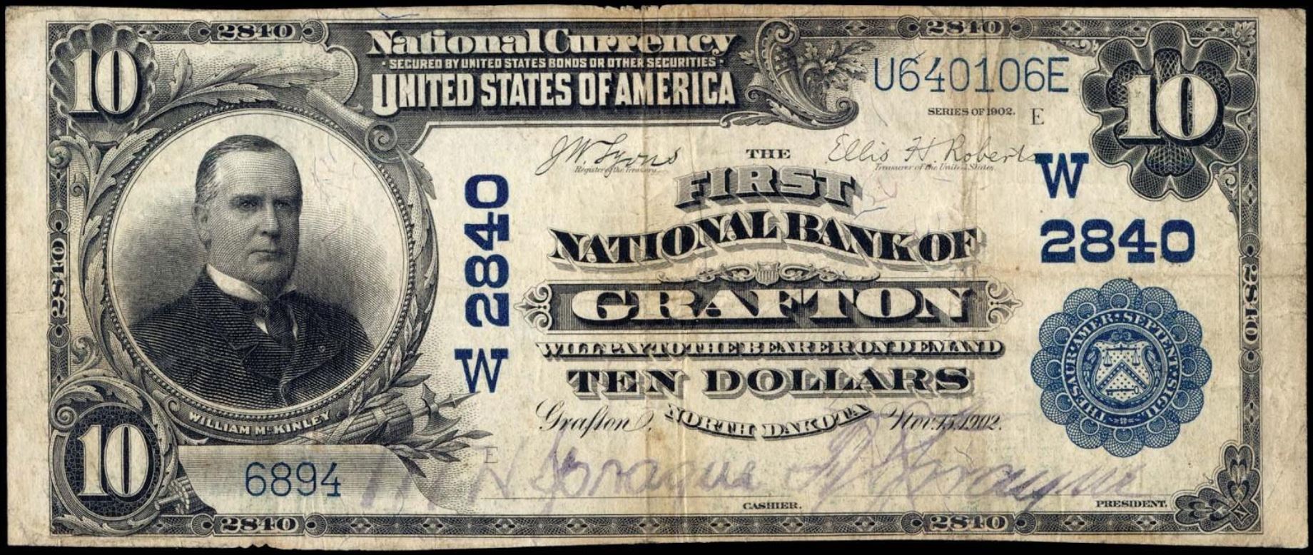 | ND | Devils Lake | 5886 | 1 | The Ramsey County National Bank of | 1902PB | 10 | 2270 | C | N | VF 35 | PMG | Image | |