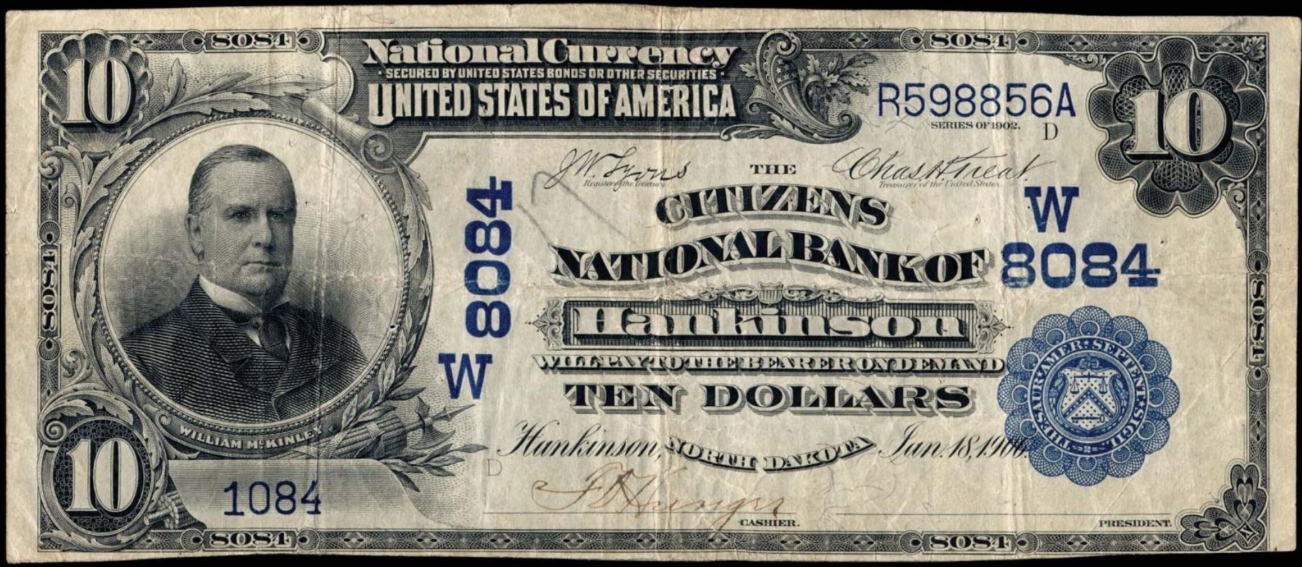 | ND | Wahpeton | 4106 | 1 | The National Bank of | 1902PB | 10 | 6505 | C | N | VF 20 | PMG | Image | |