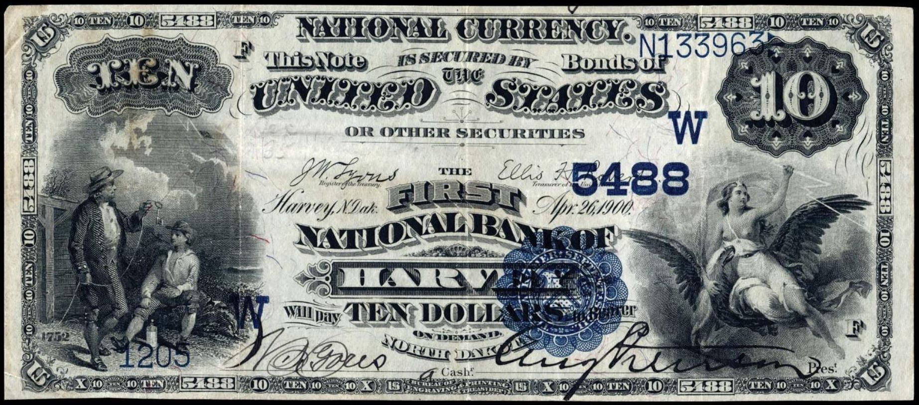 | ND | Bowbells | 7116 | 1 | The First National Bank of | 1929T2 | 10 | 760 | N | VF 25 Net | PMG | Image | ||