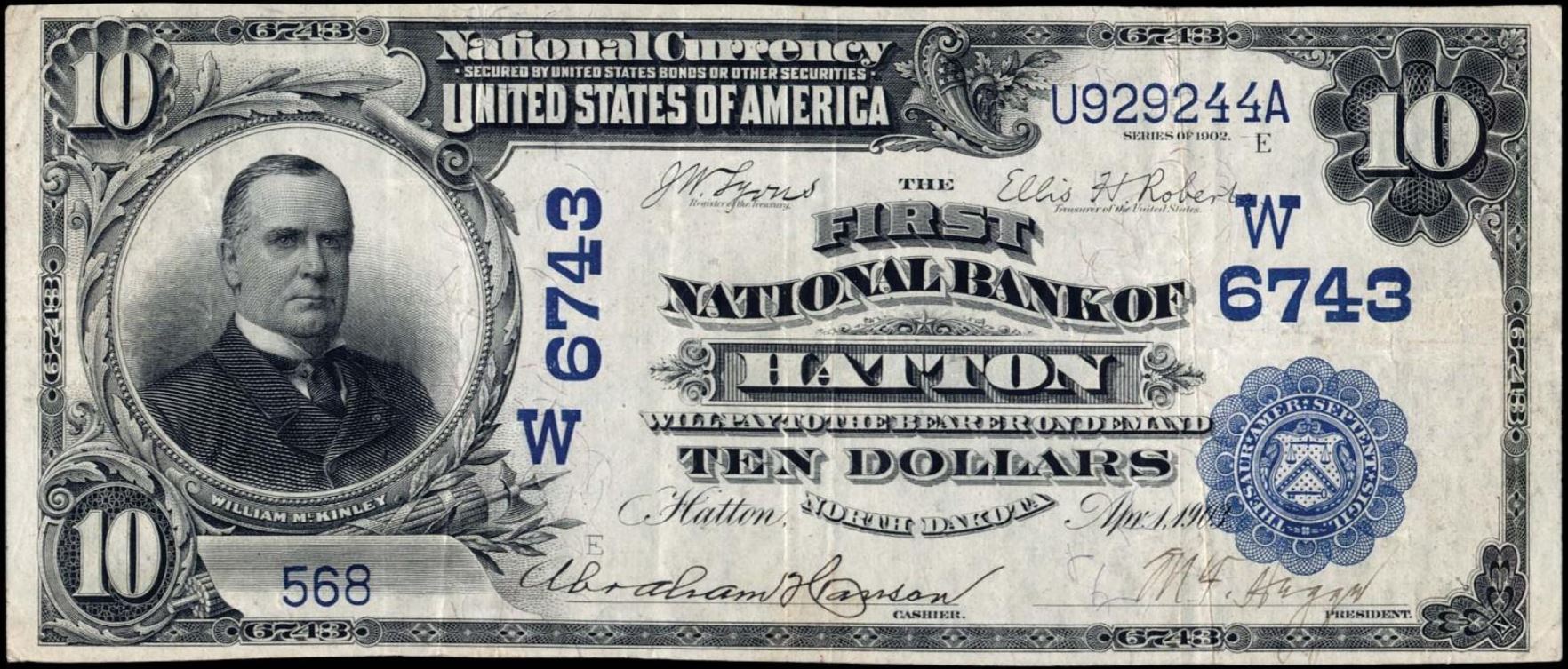 | ND | Washburn | 6327 | 1 | The First National Bank of | 1902RS | 10 | 61 | A | N | VF 35 | PMG | Image | |