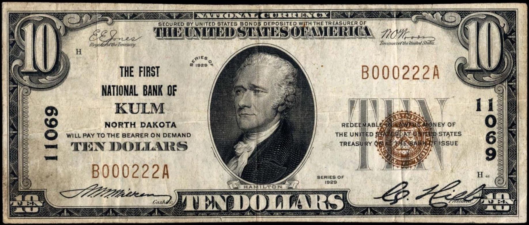 | ND | Van Hook | 10966 | 1 | The First National Bank of | 1929T1 | 10 | 58 | B | N | Fine 15 | PMG | Image | |