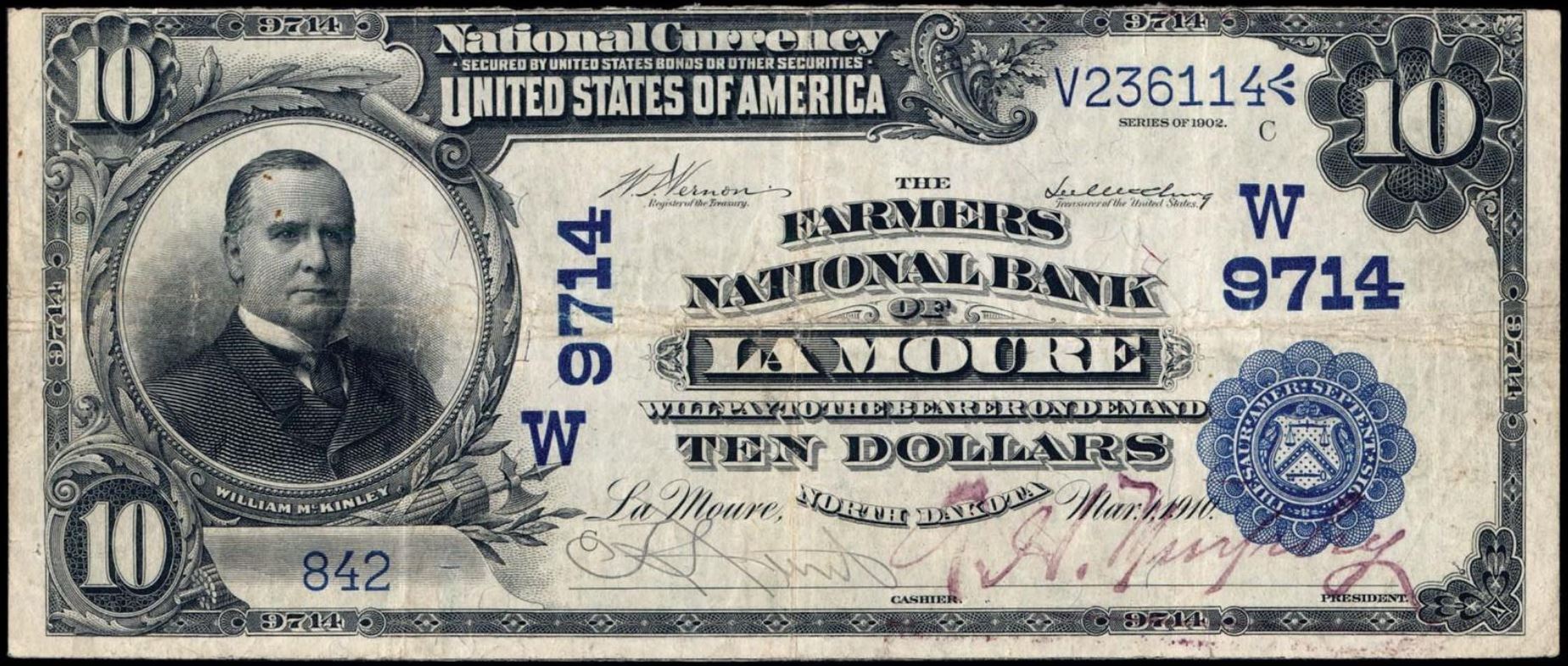 | ND | Willow City | 6766 | 1 | The First National Bank of | 1902PB | 10 | 1530 | F | N | VF 20 | PMG | Image | |