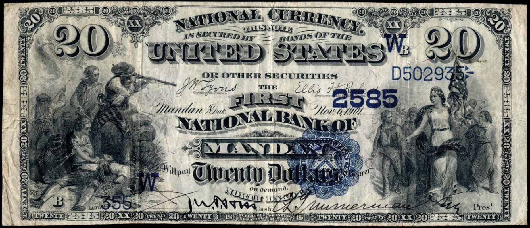 | ND | Dickinson | 12401 | 1 | The Liberty National Bank of | 1902PB | 20 | 506 | A | N | VF 20 Net | PMG | Image | |