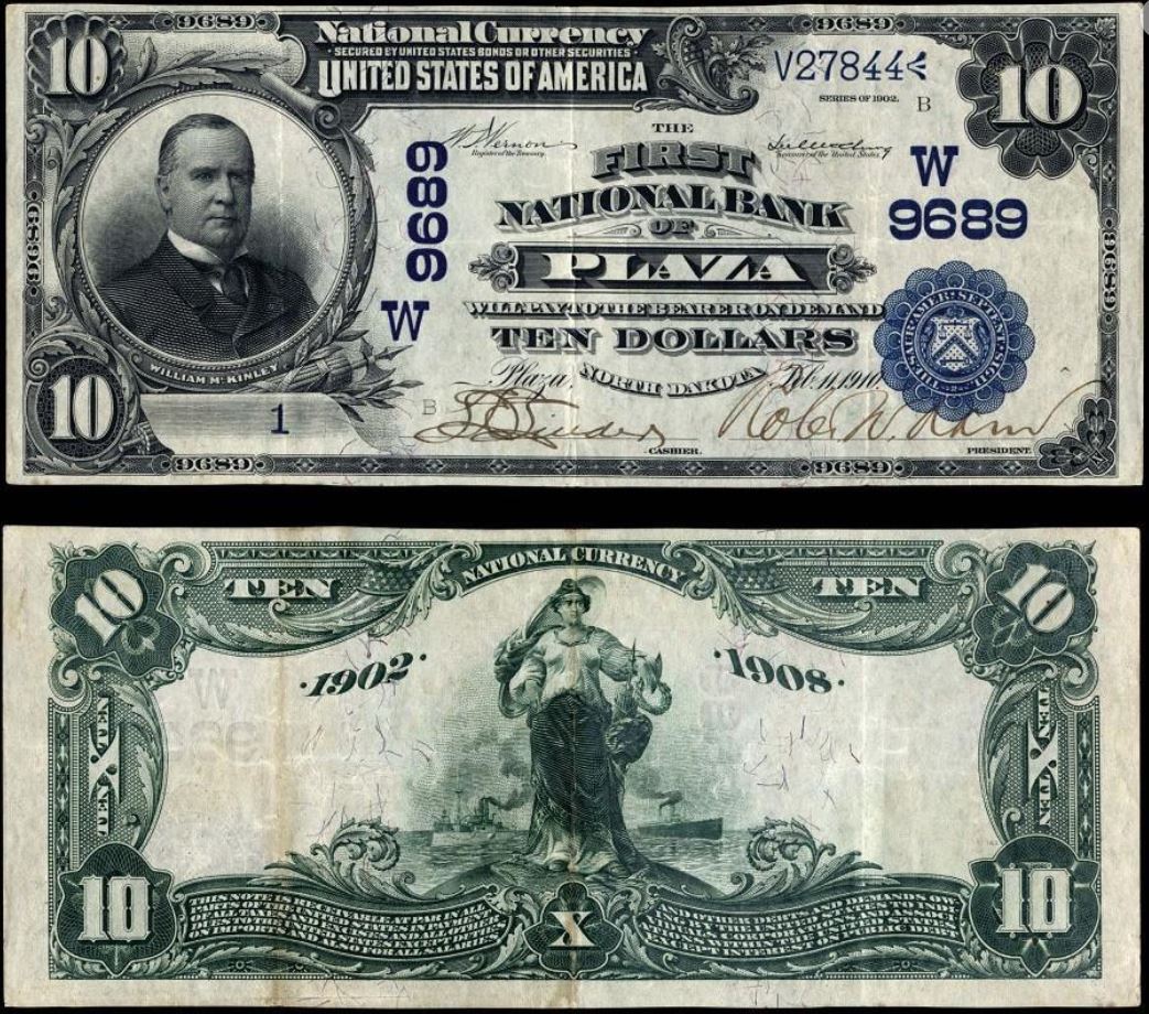 | ND | Plaza | 9689 | 1 | The First National Bank of | 1902DB | 10 | 1 | B | N | VF 35 Net | PMG | Image | Replacement Note |