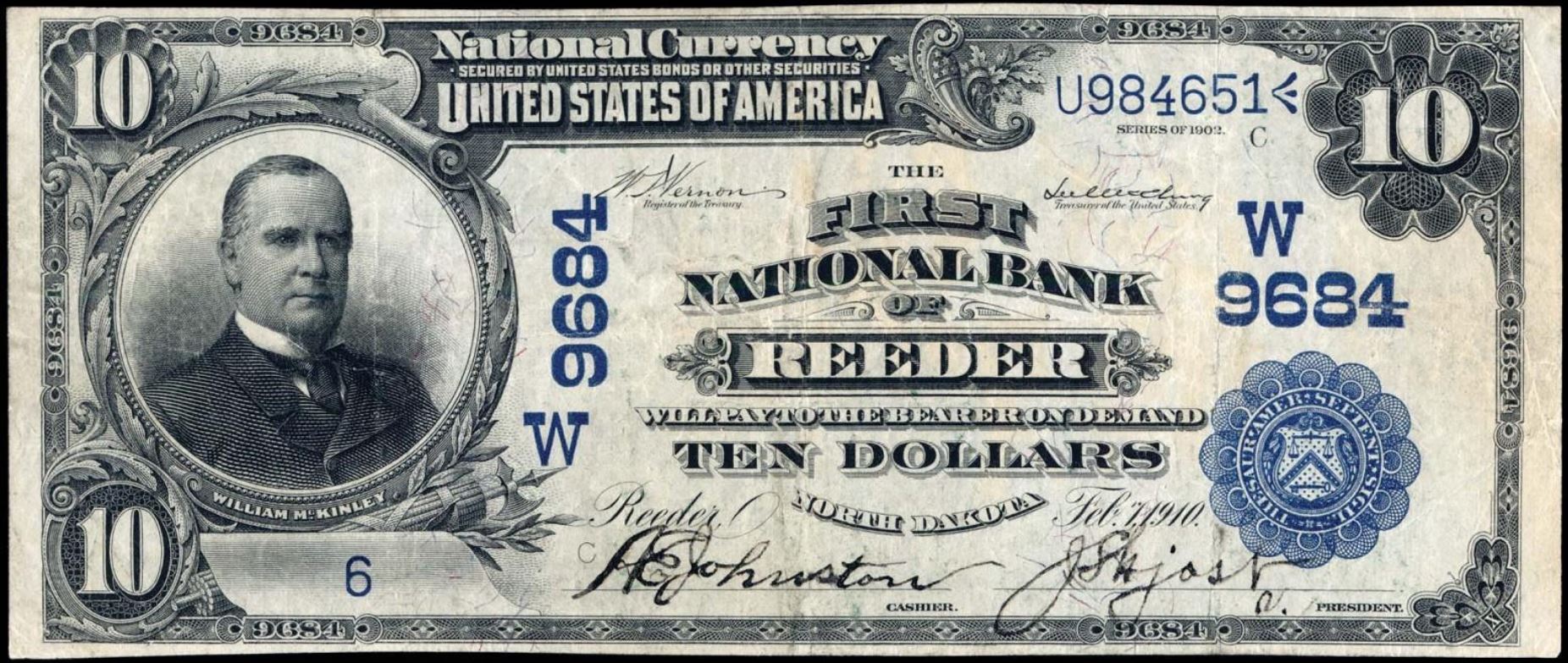| ND | Reeder | 9684 | 1 | The First National Bank of | 1902DB | 10 | 6 | C | N | Fine15 Net | PMG | Image | |