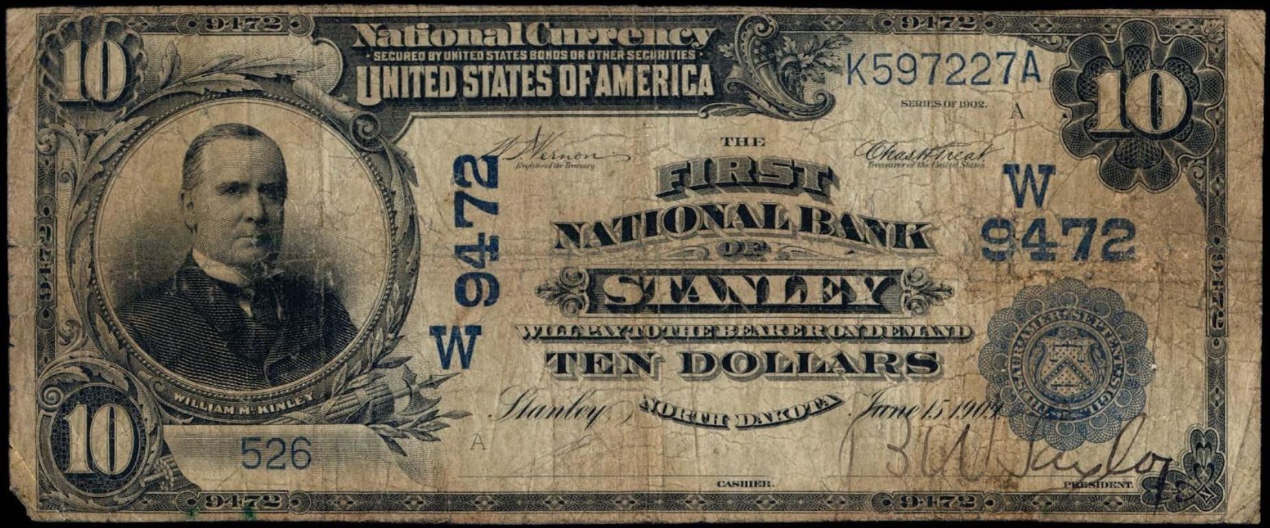 | ND | Stanley | 9472 | 1 | The First National Bank of | 1902DB | 10 | 526 | A | N | VG 10 Net | PMG | Image | |