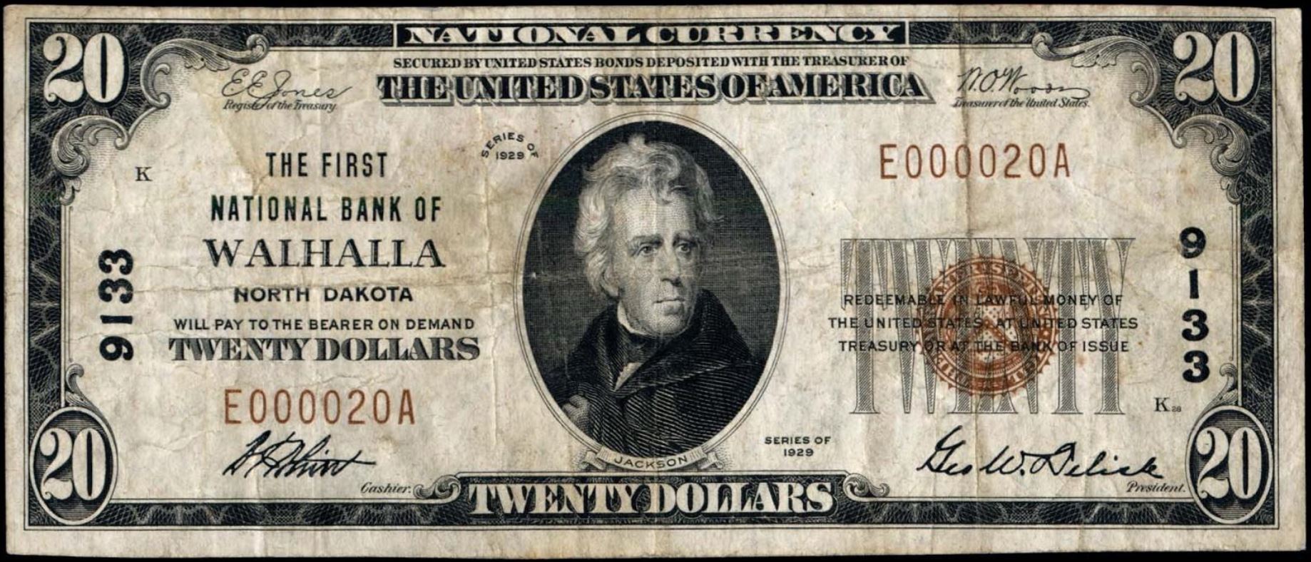 | ND | Walhalla | 9133 | 1 | The First National Bank of | 1929T1 | 20 | 20 | E | N | VF 25 | PMG | Image | |