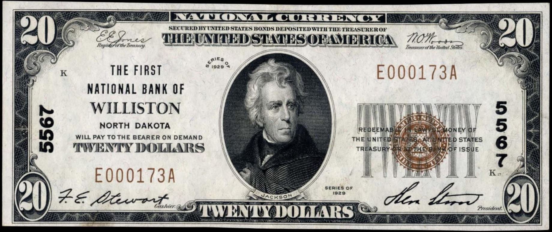 | ND | Williston | 5567 | 1 | The First National Bank of | 1929T1 | 20 | 173 | E | N | AU 58 | PMG | Image | |