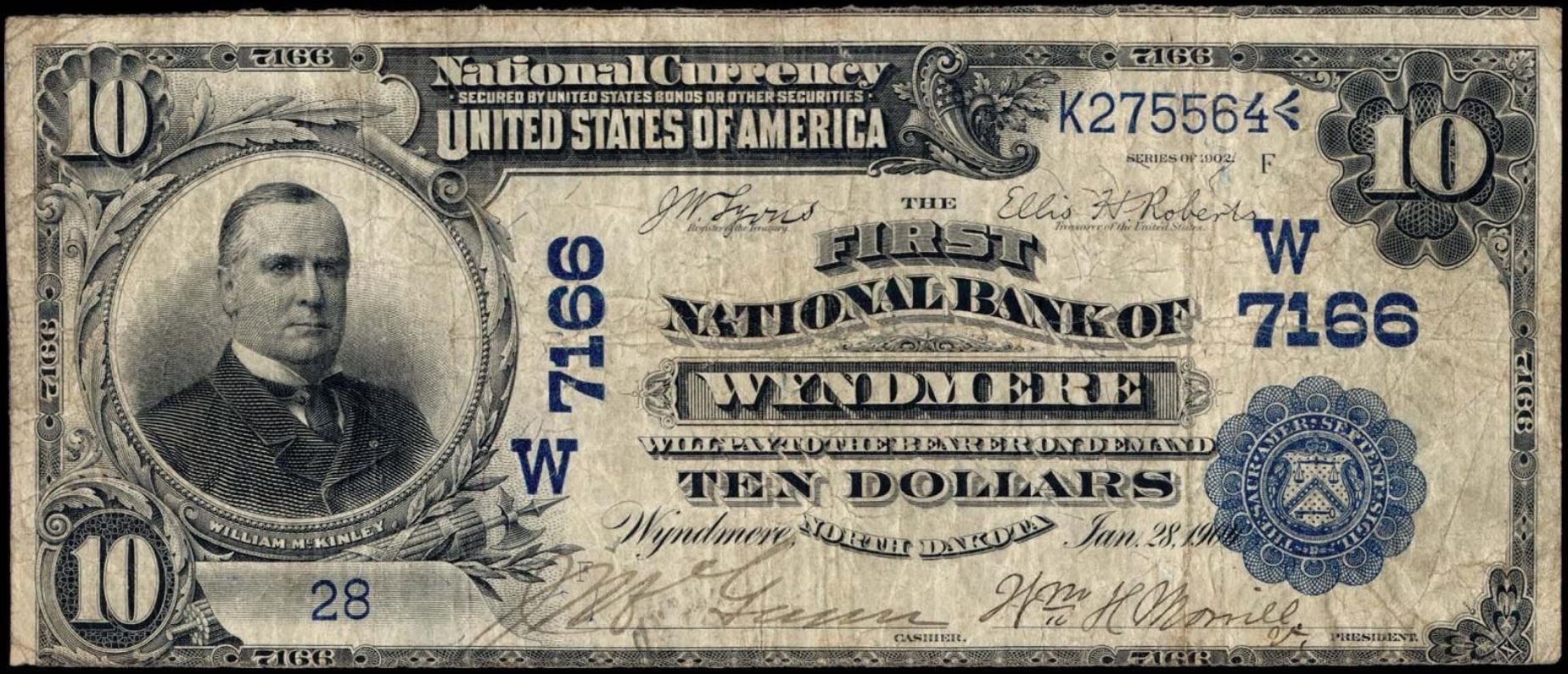 | ND | Wyndmere | 7166 | 1 | The First National Bank of | 1902PB | 10 | 1254 | D | N | Fine 15 | PMG | Image |